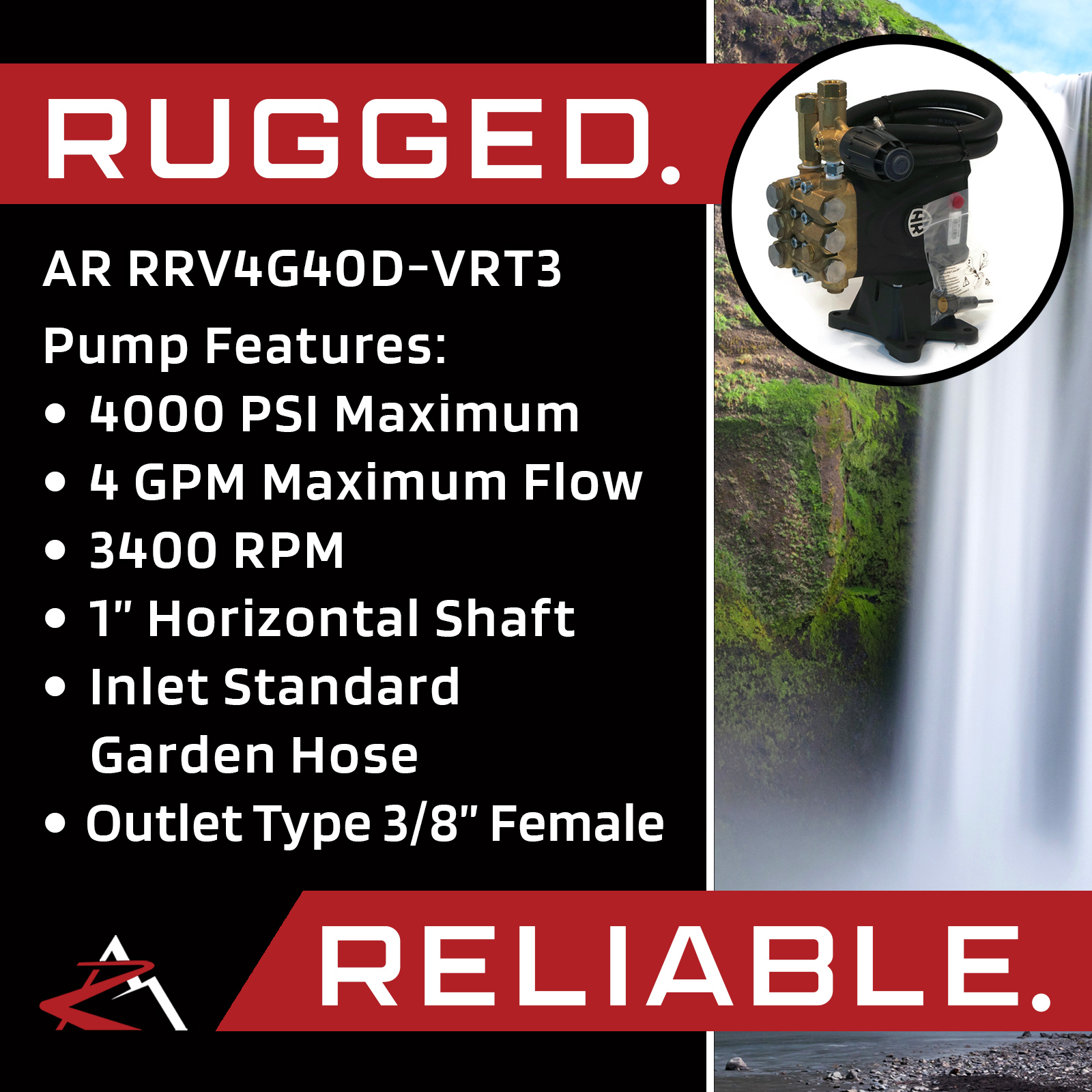 - The RRV Series are designed to direct drive on gasoline engines ranging from 5-15 HP. Life tested over 500 hours at maximum performance of 4 GPM at 4,000 PSI. Intended use for medium to heavy tasks