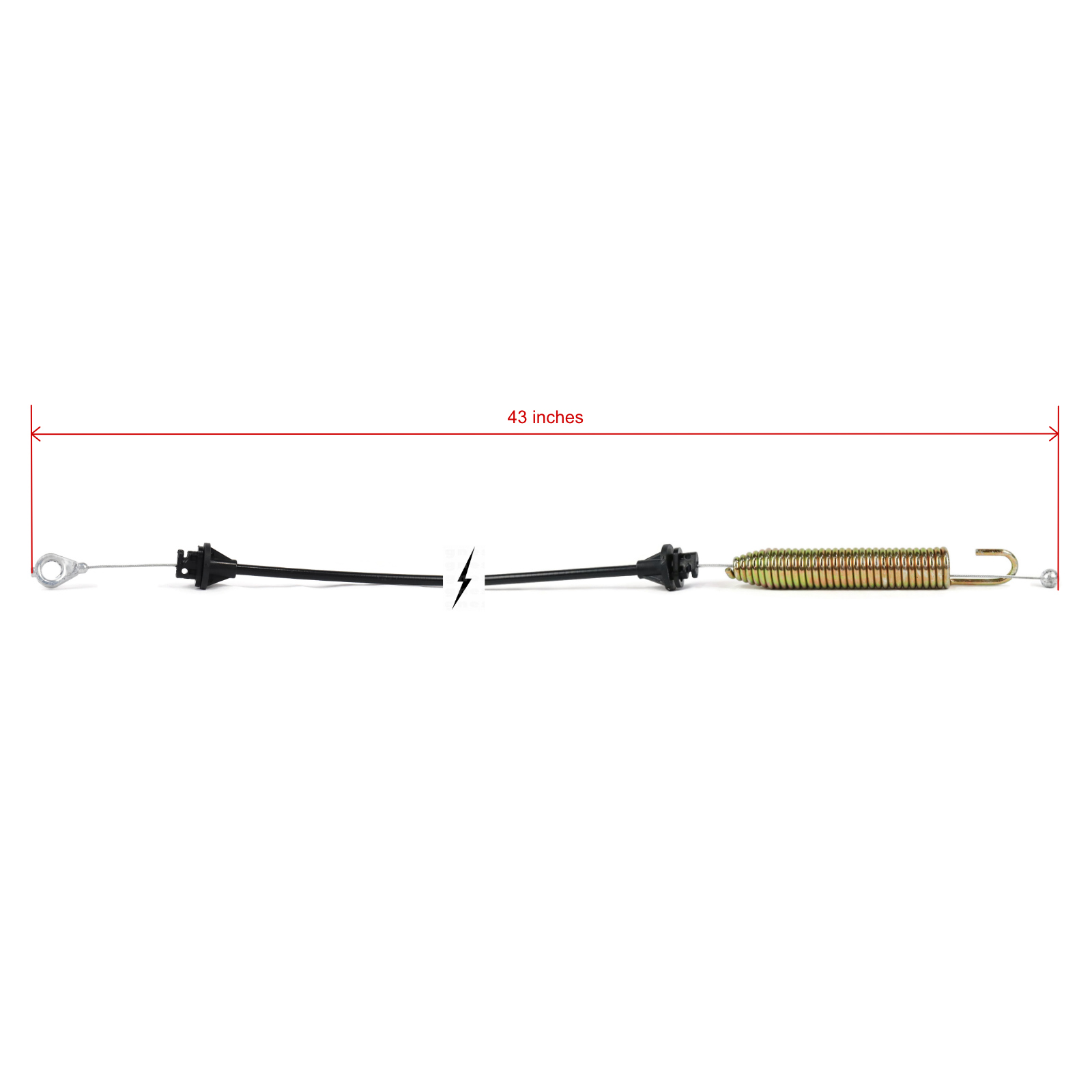 - Specs - Inner Cable Length: 43". Conduit Length: 26". Cable Ends: Eyelet & Spring. Refer to images 2 & 3 for more information