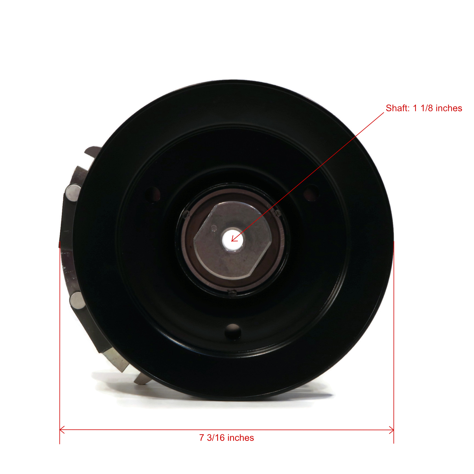 - Specs - Inner Diameter: 1 1/8". Pulley Diameter: 7 1/4". Rotation Direction: Counter Clockwise. Belt Width: 1/2" or 5/8". Auto Thermal Cutoff Termperature: 370°F. Refer to images 2 & 3 for more information