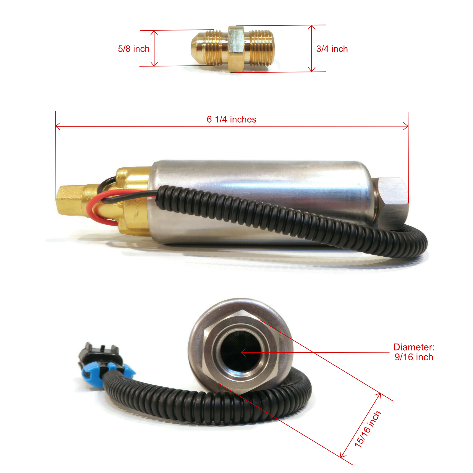 - Includes - (1) Fuel Pump, (1) Cooler Unit, (1) Screw, (1) Fitting & (7) O-Rings; comes as shown in the first image