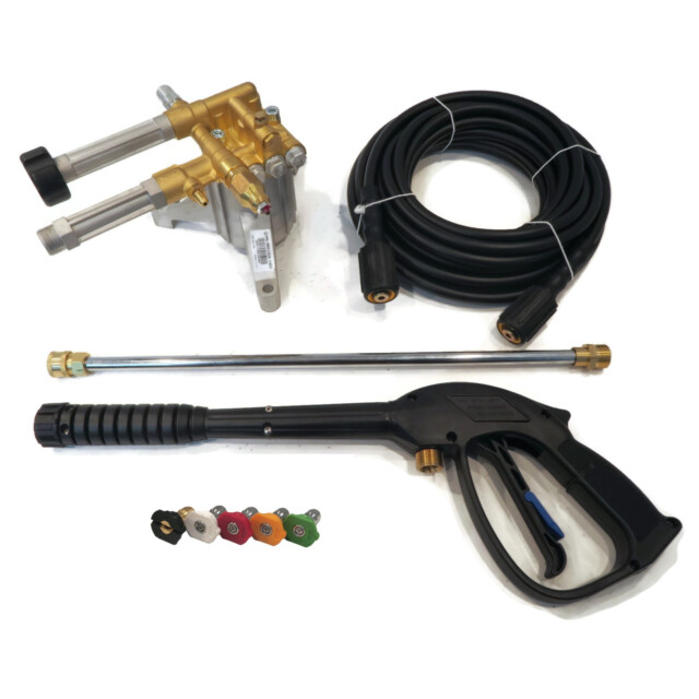 - Includes - (1) Pressure Washer Pump, (1) 35' Hose, (1) Spray Gun, (1) 18" Extension Lance, (1) 0° Spray Tip - Red, (1) 15° Spray Tip - Yellow, (1) 25° Spray Tip - Green, (1) 40° Spray Tip - White & (1) Soap/Chemical Spray Tip - Black; comes as shown in the first image