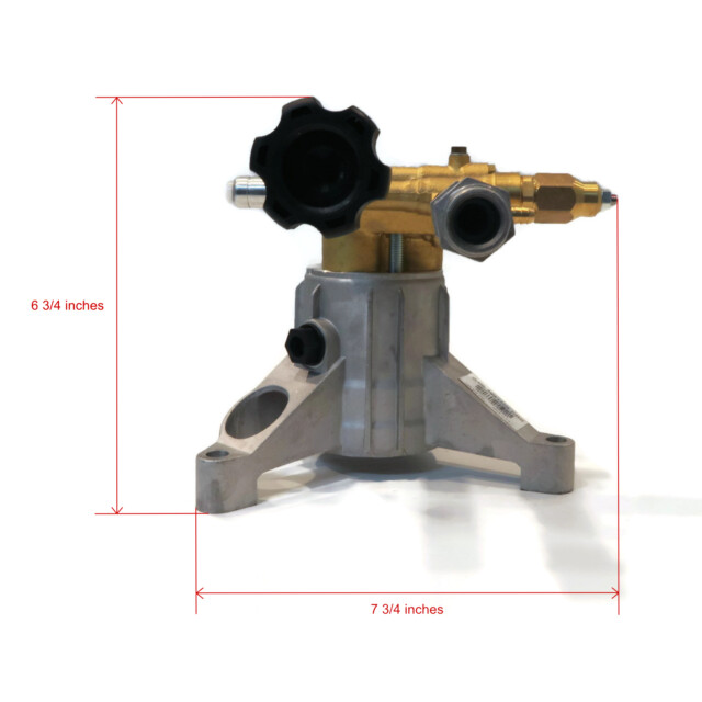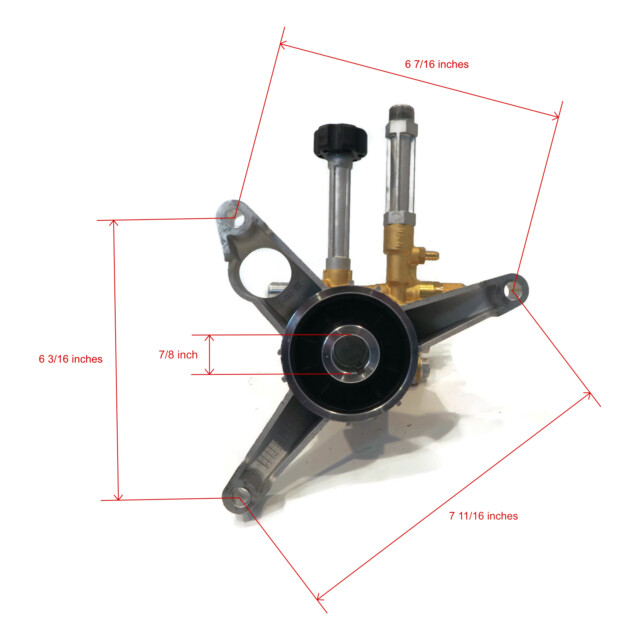 - Specs - Maximum Pump Pressure: 2800 PSI. Maximum Pump Flow: 2.5 GPM. Maximum Pump Speed: 3400 RPM. Shaft Size: 7/8". Pump 3 Bolt Pattern: 7 11/16" x 6 3/16" x 6 7/16" & 4" Center to Each Outer Hole. Maximum Fluid Temperature: 140° F. Pump Inlet Type: 3/4" GHA. Pump Outlet Type: 22mm x 14mm. Oil Capacity: 2.2oz. Hose Length: 35'. Spray Gun Inlet: M22 Male. Spray Gun Outlet: M22 Female. Lance Length: 18". Lance Inlet: M22 MPT. Lance Outlet: 1/4" Female QC. Nozzle Size: 3.0. Nozzle Type: 0°, 15°, 25°, 40° & Soap. Refer to images 2 and 3 for more information