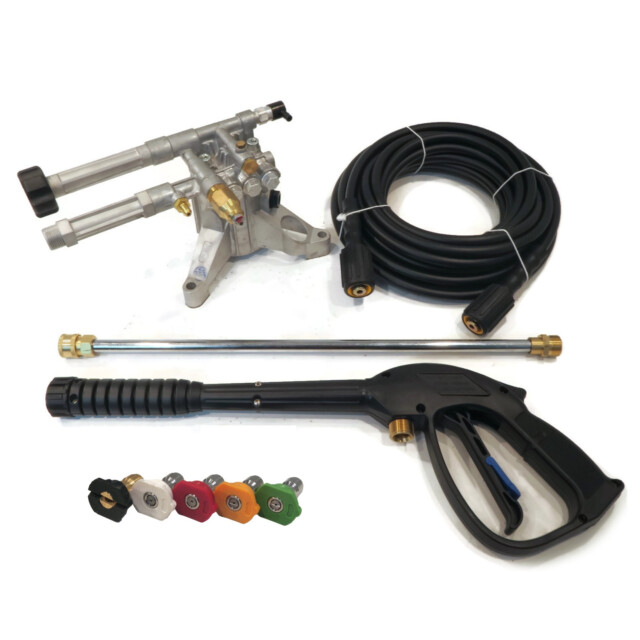 - Includes - (1) Pressure Washer Pump, (1) Spray Gun, (1) Extension Lance, (1) 35' Hose, (1) 0° Spray Tip - Red, (1) 15° Spray Tip - Yellow, (1) 25° Spray Tip - Green, (1) 40° Spray Tip - White & (1) Soap/Chemical Spray Tip - Black; comes as shown in the first image