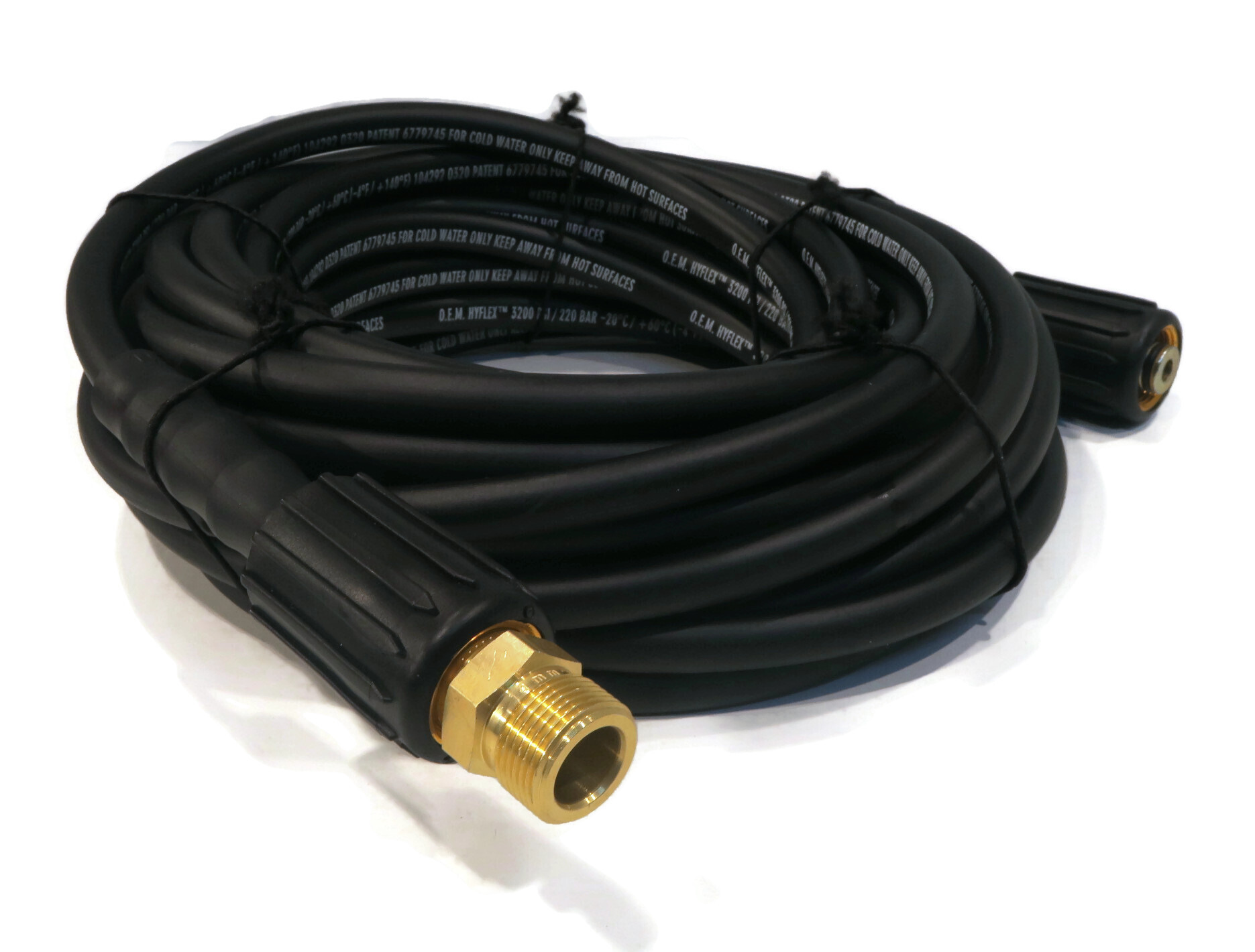 - Specs - Spray Gun - Inlet: M22 male. Outlet: M22 female. Maximum PSI: 3000. Maximum Temperature: 140° F (60° C). Maximum GPM: 7. Lance - Male Pipe Thread Inlet: M22. Female Quick-Connect Outlet: 1/4". Max GPM: 10.5. Max PSI: 4000. Max Temperature: 300 degrees F (150 degrees C). Spray Nozzle - Maximum Pressure: 3100 PSI. Maximum Volume: 2.5 GPM. Maximum Temperature: 104°F (40°C). Connection Type: 1/4" Male Quick-Connect. Hose - Length: 35'. End Types: M22 Female, Threaded. Diameter: 1/4" (6mm). Maximum Pressure: 3200 PSI. Cleaner Attachment - Maximum Pressure: 3300 PSI. Connection Type: 1/4" Male Quick-Connect. 2 Nozzles Spin Over 2000 RPM