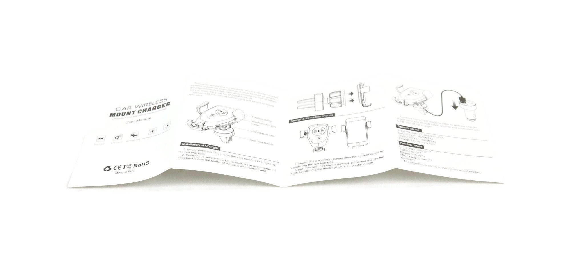 - Includes - (1) Wireless Car Charger, (1) Micro USB Charge Cable, (1) Mount Clip with Sticky Pad & User Manual; comes as shown in the first image