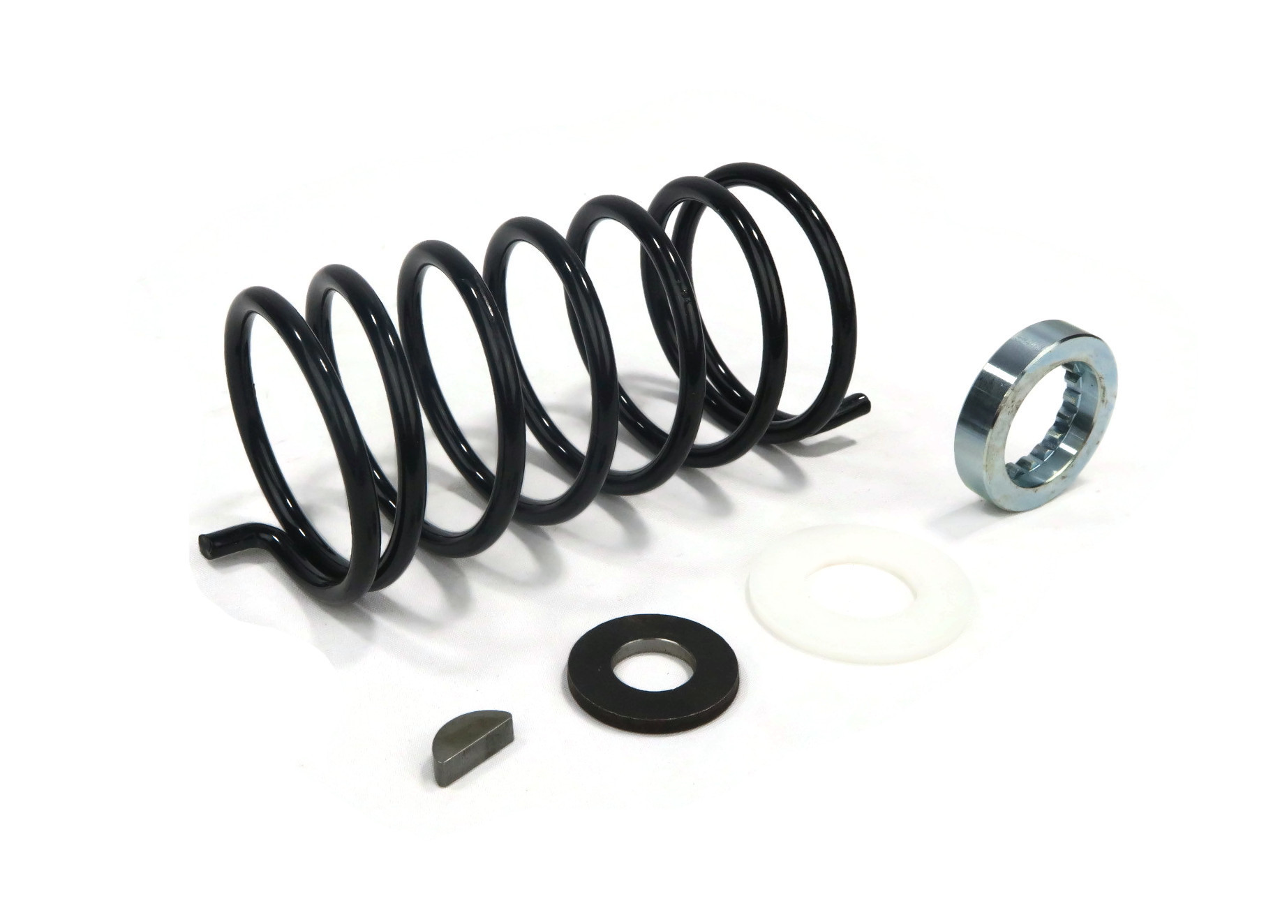 - Includes - (1) Secondary Fixed Sheave, (1) Secondary Sliding Sheave, (1) Secondary Spring Seat with Ramp Shoes, (1) Torsion Spring, (1) Plate Washer, (1) Input Shaft Spacer, (1) Oil Seal & (1) Woodruff Key; (1) Primary Fixed Sheave, (1) Bolt, (1) Washer, (1) Split Washer; (1) Drive Belt; comes as shown in the first image